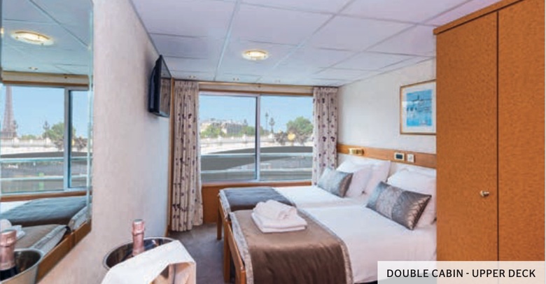 Comfortable cabin adapted for passengers with reduced mobility and equipped with French balcony, one double bed, private bathroom with shower and bath products, satellite TV, safe, hairdryer and radio. Located on the upper deck, its large panoramic sliding window offers a great view of the landscapes. Amenities TV Telephone (for internal calls only) Bathroom with shower and toilet Towels Safe Independent air-conditioning Electricity 220V Wi-Fi Please note that there is no laundry service on board the ship.