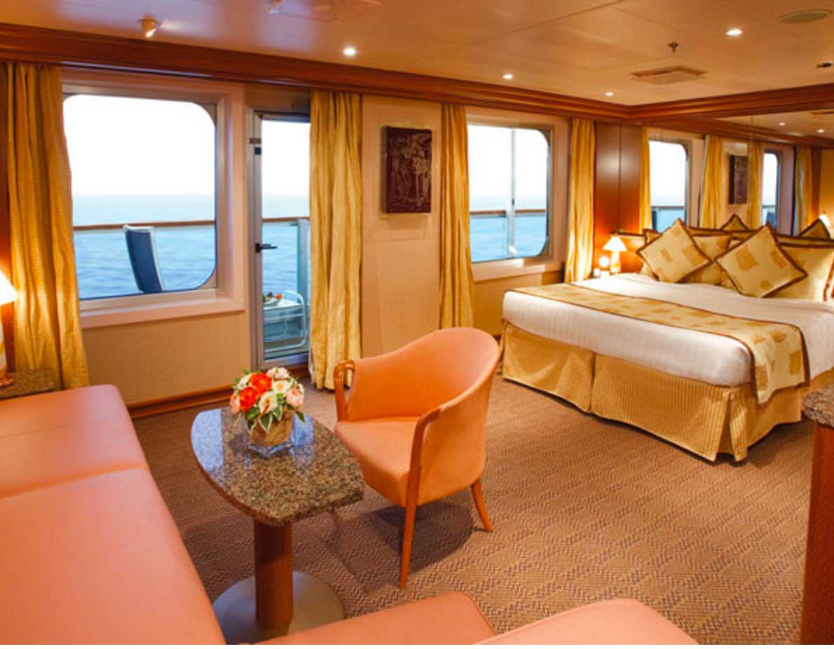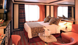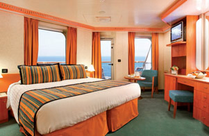- Two twins that convert to queen-size - large windows with glass doors - private veranda - closet space - private bath with shower - seating area - desk - sofa bed - vanity - television - phone - hairdryer - mini bar - safe